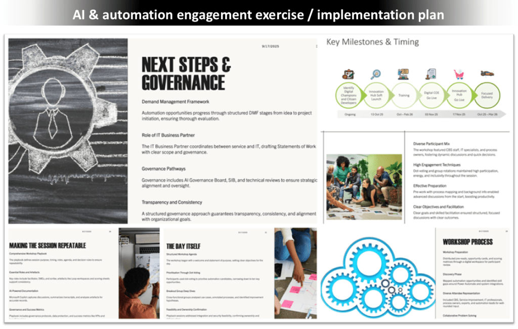 I co-led an engagement exercise on AI and automation at a public-sector organisation. The goal was to identify opportunities to streamline processes, improve service delivery, and enhance operational efficiency. We started with stakeholder workshops to understand current pain points and to map high-volume, repetitive tasks that could be automated. The project team assessed several areas, including document processing, citizen query handling, compliance reporting, and client case notetaking. We aimed to identify and score opportunities for cost savings and faster turnaround times. We also emphasised the importance of ethical considerations, transparency, and alignment with regulatory frameworks to maintain trust and accountability. By fostering collaboration between IT teams and business units, we developed a phased implementation roadmap to deliver measurable benefits while upholding public service standards.