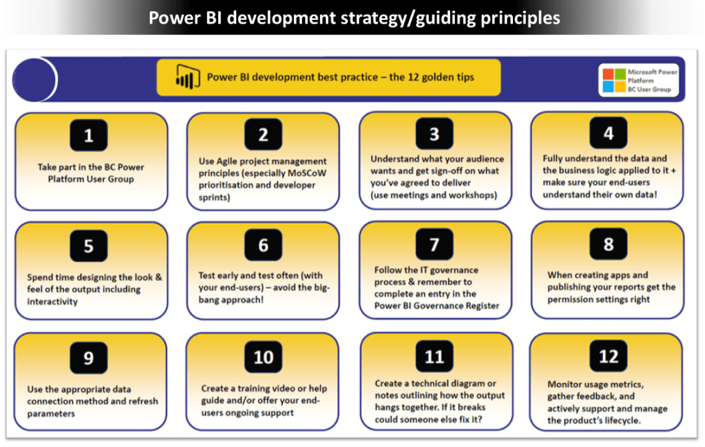 Slide 2 & 3: Power BI development strategy/guiding principles